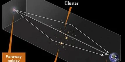 Эта ''линза'' на самом деле просто скопление галактик, известных как ''Abell 2744''. Как и предсказывает общая теория относительности Эйнштейна, масса этого гигантского кластера деформирует пространство вокруг себя. Звездный свет, пролетая мимо, изгибается и предстает в увеличенном виде — что очень похоже на прохождение света через обычный объектив, только космического масштаба.