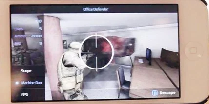 Используя возможности мощного процессора, специализированную оптику и гироскоп для того, чтобы отслеживать перемещения человека, гаджет меняет окружение на экране мобильного устройства. Скучный офис превращается в детализированную арену боевых действий, причем особенности помещения сохраняются, будь то коридоры, двери и окна. В дополненной реальности можно стрелять по ним и устраивать взрывы – вреда ''настоящей'' обстановке конечно же не будет никакого.
