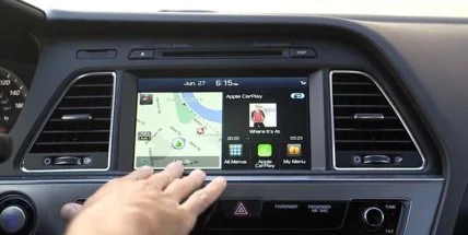 MotoMan показала бортовую систему автомобиля Hyundai Sonata с тачскрином, интерфейс которого напоминает iOS с несколькими иконками – Телефон, Музыка, Сообщения, Now Playing, Карты и Command. ''CarPlay позволяет полностью интегрировать iPhone с автомобильными мультимедийными системами Hyundai. С ее помощью водитель может совершать голосовые звонки и прослушивать сообщения, не отвлекаясь от дороги. Имеется возможность прокладывать маршруты с помощью картографического приложения Apple, просматривать и редактировать контакты, открывать различные приложения, слушать музыку и проверять почту'', – рассказали в MotoMan.
