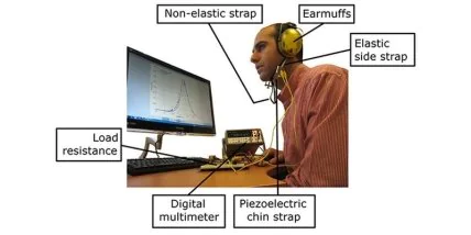 В данном случае устройство способно получать энергию от обычного движения челюсти. Данное устройство представляет собой ремешок, соединенный с наушниками и крепящийся на челюсти. Он изготовлен из специального полимерного материала с пьезоэлектрическими свойствами, благодаря которым ремешок способен вырабатывать электричество из движения нижней челюсти.