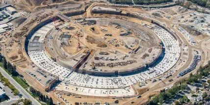 Аэровидеосъемка с места строительства кампуса-кольца Apple (Видео)
