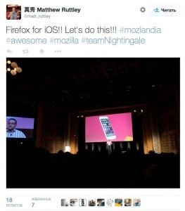 Об этом сообщил в своем микроблоге Twitter топ-менеджер компании Люкас Бак. "Это нужно для наших пользователей, поэтому мы намерены выпустить Firefox для iOS", – написал сотрудник Mozilla, сопроводив сообщение хештегом #mozlandia.