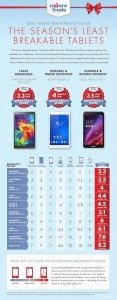 Постепенно планшеты вытесняют ноутбуки, становясь все популярнее у пользователей, благодаря более компактным размерам и аксессуарам, вроде сверхтонких клавиатур. Компания SquareTrade, предоставляющая расширенные гарантийные услуги на электронику, подвела итоги 2014 года и составила рейтинг надежности планшетов. Результаты оценивались по 10-бальной шкале, в которой меньшее значение соответствует лучшим показателям, а внимание уделялось таким особенностям, как дизайн передней и задней панелей корпуса, строение ребер жесткости и материал рамы, размер, вес, устойчивость к влаге и удобство хвата. Лучшим по совокупности этих параметров был признан Samsung Galaxy Tab S 8.4, набравший 3.3 балла.