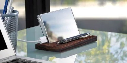 Стильный портативный накопитель LaCie Mirror выполнен в корпусе из стекла Corning Gorilla Glass. Зеркальный параллелепипед устанавливается в подставку из эбенового дерева, включенную в комплект. Объем Mirror составляет 1 ТБ. По замыслу создателей, зеркальная поверхность корпуса служит метафорой того, что данные, находящиеся в накопителе — фотографии, видеозаписи, документы — являются отражением пользователя. Габариты новинки, оснащенной интерфейсом USB 3.0, составляют 80 x 128 x 13 мм. Девайс оценили в $280.