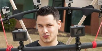 360° фотографии становятся все более популярны, и теперь можно сделать собственные 360° фотографии с помощью специального приспособления Do It YourSelfie 360° Selfie Rig. Круговая конструкция устройства размещает на себе 12 камер. С помощью ремней и тростей аппарат закрепляется на теле человека. Камеры размещены на уровне головы человека, благодаря чему можно делать 360-градусное селфи. С помощью бесплатного приложения, работающего и на Android, и на iOS (в скором времени и для Windows phone), камеры синхронизируются для создания двенадцати снимков и дальнейшей 3D-модели.