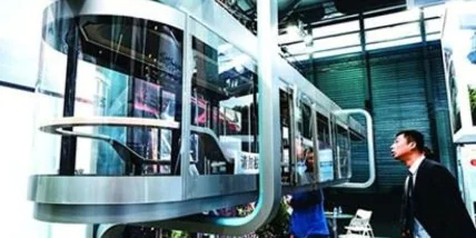 На открывшейся в китайском Шанхае выставке Rail+Metro China-2015 представлена модель монорельсового воздушного поезда, сделанного из прозрачного стекла.