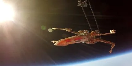 Разумеется, в данном случае речь идет об игрушечном X-Wing, который был поднят в стратосферу с помощью высоколетающих воздушных шаров, обычно использующихся в метеорологии. К ним также была прикреплена экшен-камера GoPro, которая и отвечала за процесс съемки. Получив отснятый материал, энтузиастам оставалось лишь наложить на него знакомую всем звуковую дорожку и титры.