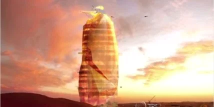 Французская архитектурная компания OXO разработала проект небоскреба, который планируется построить в течение 10 лет в самой большой пустыне мира Сахаре. Высота данного небоскреба будет составлять 450 метров, а его площадь -780 000 квадратных метров. Здание будет использовать для систем жизнеобеспечения возобновляемые источники энергии: сбор дождевой воды, солнечную энергию, геотермальную энергию. Фактически в одном небоскребе будет размещен полноценный город. Около 20% площади здания будут предназначены для офисов, а для жилых помещений -50% площади. "Мы старались придумать концепцию, которая позволяет нам создать не здание, а вертикальный город в пустыне. Это место является враждебным и трудным для жизни, так что мы создали некоторую защитную оболочку для небоскреба", - сказал архитектор Манал Рахди.