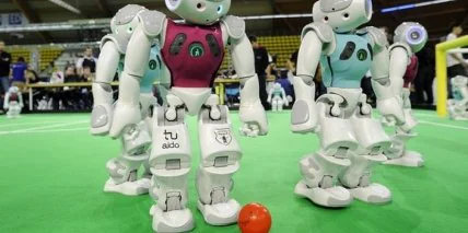 Первый международный футбольный турнир среди роботов был проведен в 1997 году. Хотя с годами и был достигнут определенный прогресс, машины по-прежнему ведут себя крайне неуклюже и постоянно падают. Реальная проблема для роботов заключается в выполнении нескольких задач. Сначала машина должна обнаружить мяч, затем добраться до него и нанести точный удар.