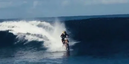 Экстремал прокатился по волнам на мотоцикле (Видео)