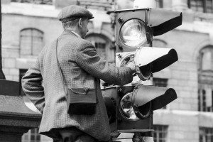 А вот на территории СССР в 1930-х годах был не только трехцветный регулировщик движения, но и светофор-фонарь, похожий на часы. На каждой из его четырех сторон был диск с цветными секторами, по кругу ходила стрелка, указывающая на зеленый, красный или желтый сектор.