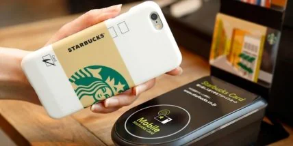 Впервые возможность оплатить кофе с помощью смартфона сеть кофеен предложила в 2011 году американским пользователям iPhone. Для того, чтобы воспользоваться системой, покупателю было необходимо приобрести карту Starbucks, а также загрузить на телефон специальное приложение из App Store. Программа отображает штриховые коды заказанных продуктов, а также позволяет сканеру у прилавка производить списание средств с карты Starbucks.