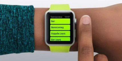 Для тех, кто предпочитает циклические виды спорта, в Apple Watch есть предустановленное приложение "Тренировка". Выбираем пункт "Бег", нажимаем "Старт" и вперед. Интерфейс логичный и очень удобный. На первом экране показывается длительность пробежки, далее, если листать влево, можно узнать, с какой скоростью вы бежите, сколько километров намотали, сколько калорий потратили и какой у вас пульс. Все эти данные часы получают благодаря датчику измерения пульса (зеленые лампочки с обратной стороны корпуса), акселерометру и GPS на iPhone.