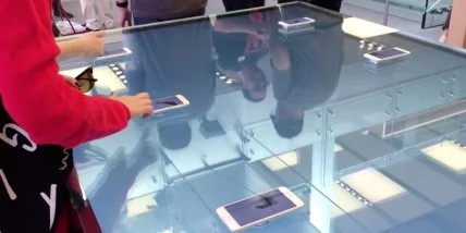 Первыми Apple Store с интерактивными столами стали магазины в Сан-Франциско и Нью-Йорке. Демонстрационные стенды взаимодействует с помещенными на них iPhone 6s. Коснувшись дисплея 3D Touch на смартфоне можно спугнуть виртуальную рыбку или пустить рябь по воде.