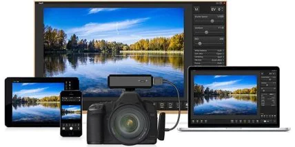 Приложение CamFi превращает iPhone или iPad в многофункциональное интерфейсное устройство для работы на всех стадиях съемки. Пользователю доступен выбор точек фокусировки, изменение параметров, включая настройку значений диафрагмы, выдержки и светочувствительности, корректировка режима замера экспозиции, ввод коррекции экспозиции.