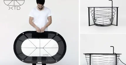 В сложенном виде XTEND представляет собой 7-килограммовый и 8,5-миллиметровый плоский овальный лист. Основными составляющими ванны являются ножки, каркас, моющаяся ткань для драпировки и кран. Из всего этого за пару минут вы можете получить полностью функционирующую ванну.