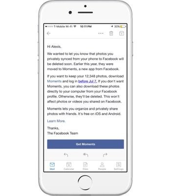 На этой неделе Facebook объявила, что фотографии, синхронизированные со смартфона без использования приложения Moments, будут удалены с серверов через месяц.