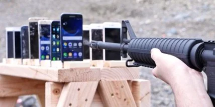На этот раз iPhone решили сравнить на прочность со смартфонами Samsung и сделать это с помощью полуавтоматической винтовки AR-15.