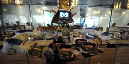 На входе в ресторан стоит швейцар, который приветствует клиентов фразой : "Здравствуй, Человек Земли, добро пожаловать в Ресторан Роботов". Официантом является уже другой робот, который передвигается между кухней и столиками по специальной дорожке на полу, а узнают, когда нужно подойти к клиентам при помощи специальных датчиков, встроенных в стулья. Готовят еду кстати, тоже роботы: один повар делает пельмени, другой — лапшу. Однако блюд в меню больше 30, так что остальное готовят люди. Зато певец, развлекающий гостей в зале, тоже сделан из железа.