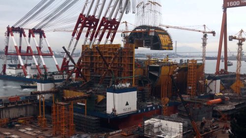 В середине прошлого года два 1 600-тонных портальных подъемных крана Goliath, работающие на судостроительной верфи компании Hyundai Heavy Industries, получили весьма мощное "подкрепление". Этим подкреплением стал новый плавучий подъемный кран Hyundai-10000, способный поднимать и перемещать груз, в шесть раз более тяжелый, чем могут поднимать упомянутые выше портальные краны. В настоящее время кран Hyundai-10000 уже был задействован для перемещения огромных и массивных структур, к примеру, узлов морских бурильных платформ Aasta Hansteen, которые строятся по заказу норвежской компании Statoil.