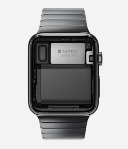 Apple Watch оснащены уникальным приводом тактильного воздействия, который производит мягкое воздействие на запястье при поступлении уведомлений. Механизм линейного перемещения получил название Taptic Engine. В новой модели движок будет располагаться в ремешке смарт-часов, получая управляющие сигналы через разъем в корпусе устройства.