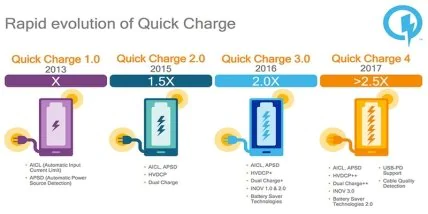 В конце прошлого года Qualcomm анонсировала новую версию стандарта быстрой зарядки Quick Charge 4, и хотя она поддерживается в топовом чипсете Snapdragon 835, первые гаджеты на его основе используют Quick Charge 3.0. Как оказалось, более современная технология появится в смартфонах не раньше середины года.
