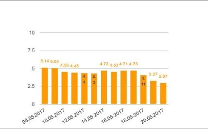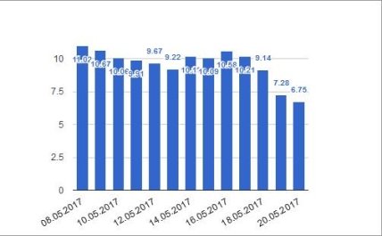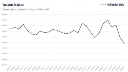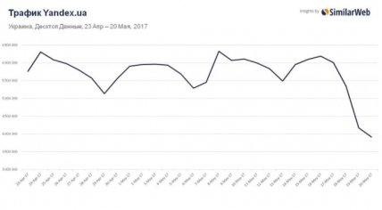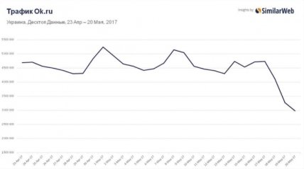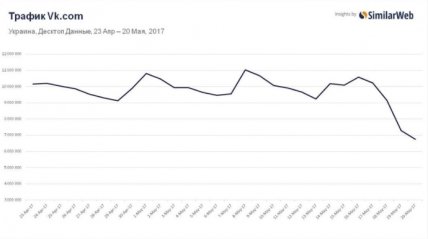 Согласно данным на 20 мая 2017 года, посещаемость социальной сети "Вконтакте" (vk.com) в Украине упала на 3,35 млн визитов за 5 дней блокирования доступа.