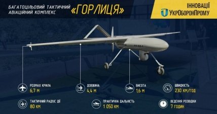 Кроме многофункциональной разведывательной аппаратуры, "Горлица" имеет возможности оснащения высокоточными средствами поражения. При этом практичная расстояние полета ударного беспилотника составит более 1000 км.