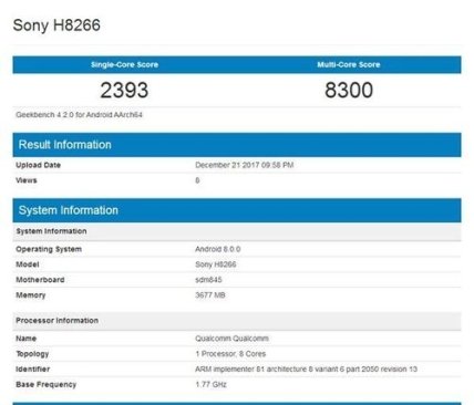 В одноядерном тесте Sony H8266 набрал 2 393 балла, а в многоядерном — 8 300. Эти результаты сравнимы с теми, что недавно продемонстрировал Samsung Galaxy S9 Plus. Судя по всему, мы видим реальную производительность нового процессора.
