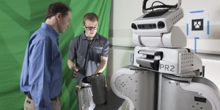 Робот под названием PR2 может помогать в больнице. Он уже попытался надеть больничную робу на больного. Машина ориентируется на силу натяжения ткани.