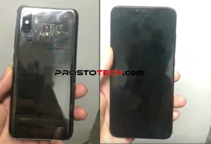 Как свидетельствуют снимки, новинка тоже будет иметь островок на дисплее как у Iphone Х. Задняя панель, как свидетельствуют фото, прозрачная, изготовлена из стекла.