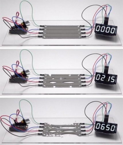 Для демонстрации своего изобретения инженеры подключили к нему электронные часы и отрезали куски материала — при этом таймер не прекращал своего хода.