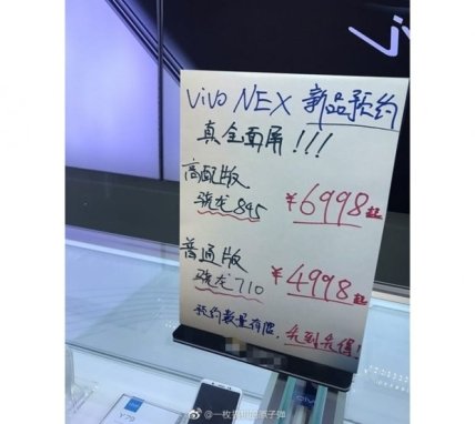 За несколько дней до официальной презентации китайского смартфона Vivo Nex, который ранее представляли под названием Vivo Apex, в сеть просочилась информация о его стоимости.