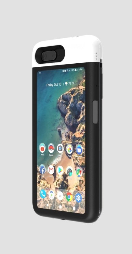 Компания предлагает две версии, одна из которых поддерживает две SIM-карты, а вторая только Wi-Fi. Особенностью чехла является функция Always On Display, инфракрасный порт, 3,5-миллиметровый разъем под наушники и возможность проецировать изображение с основной камеры iPhone на экран чехла.