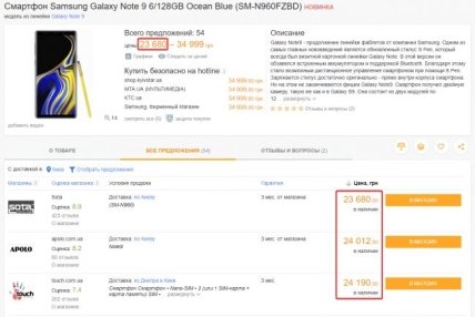 Некоторые интернет-магазины снизили ценник флагмана на 30% и теперь в розничных сетях Galaxy Note 9 можно приобрести за 23600 гривен. Более того, ценник на новинку ежедневно снижается на 50-100 гривен. Такая тенденция неудивительна, ведь огромное число покупателей посчитали стартовую цену более чем неадекватной, а удешевление новинки немного повысило спрос.