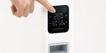 Устройство оснащено сенсорным экраном, на котором может отображаться различная информация, включая выставленную температуру нагрева и влажность воздуха в помещении. Экран имеет три степени яркости подсветки, чтобы обогреватель было комфортно использовать ночью. Также подсветку можно полностью отключить. Температуру нагрева можно регулировать в диапазоне от 16 до 32°C. Встроенный двойной температурный датчик постоянно замеряет температуру воздуха, чтобы использовать электроэнергию максимально экономично.