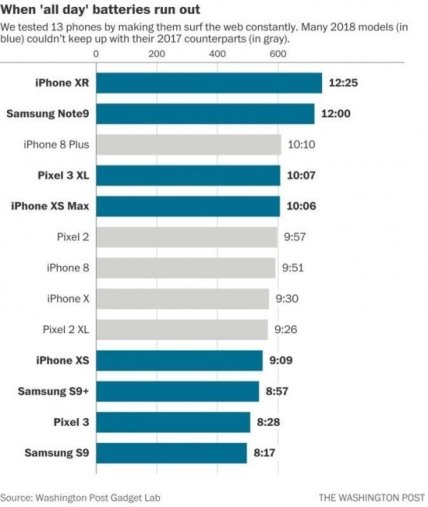 Рейтинг смартфонов по автономности работы (Фото: The Washington Post)