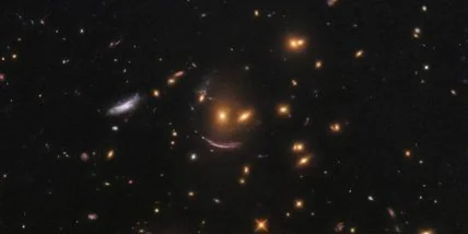 Улыбка вызвана огромной массой галактического кластера SDSS J0952 + 3434, который создает удивительный феномен сильного гравитационного линзирования. Масса кластера изгибает свет, подобно тому, как свет искажается в жидкости, находящей в бокале.