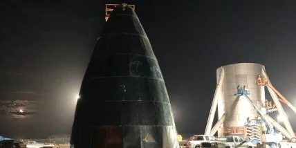 Маск разместил в Твиттере фото двух частей космического корабля - конического сечения рядом с цилиндрическим блоком с посадочными ножками.