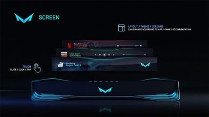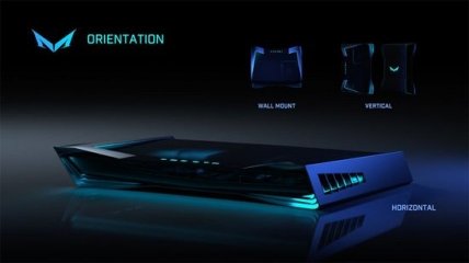 На новых концепт-артах нам показывают более привычный форм-фактор, устройство оснащено дисплеем на лицевой панели, на котором может отображаться различная информация, в частности, о воспроизводимой игре, музыке или фильме. Подсветка корпуса консоли может быть настраиваемой.