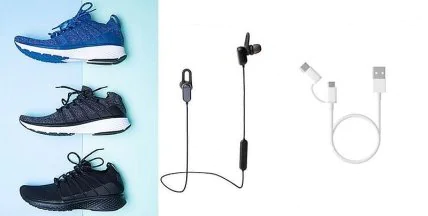 Это беспроводные наушники Mi Sports Bluetooth, мужские кроссовки Mi Men’s Sports Shoes 2 и USB-кабель.