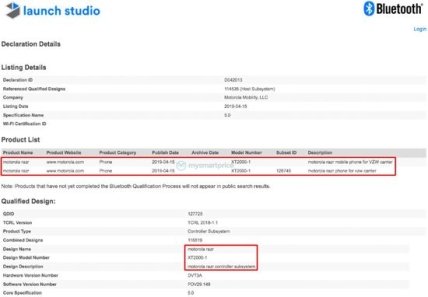 Складной смартфон Motorola Razr прошел Bluetooth-сертификацию