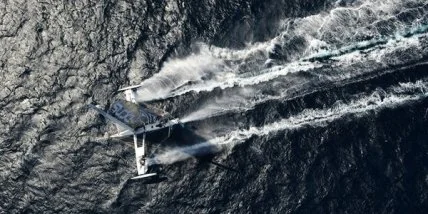 Ведь этот парусник может разгоняться до скорости 55,5 узлов, что равно 103 километра в час. При этом он не плывет по воде, а парит над ней. Чем больше парусник Hydroptere набирает скорость, тем выше он поднимается над поверхностью на подводных крыльях. В итоге площадь соприкосновения корпуса с водой сокращается до минимальных 2 квадратных метров. Летающий парусник Hydroptere с момента своего создания регулярно бьет очередные рекорды скорости как на коротких дистанциях, так и на длинных. Новая цель для этого судна – как можно быстрее преодолеть расстояние между Лос-Анджелесом и Гонолулу, столицей Гавайских островов...
