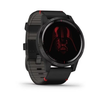 У версии Darth Vader, наоборот, ремешок черного цвета с красными вставками (кожа либо силикон). Они крупнее: 45 мм, 1,3-дюймовый дисплей с разрешением 260×260 пикселей, толщина 12,8 мм и вес 50,5 г. Автономность — до 8 дней в обычном режиме и до 6 часов в режиме GPS с музыкой.