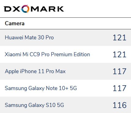 Итак, королями рейтинга стали Huawei Mate 30 Pro и Xiaomi CC9 Pro Premium Edition, у которых по 121 баллу. Они вместе делят первое место и оба показывают высококлассные результаты по фото и видео.