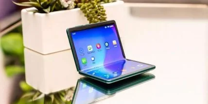 Это смартфон с довольно странным дизайном, который складывается, как книжка — прямо как и Samsung Galaxy Fold.