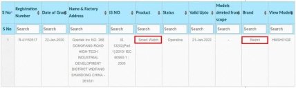 Итак, Redmi получил сертификат от Бюро индийских стандартов на устройство с номером модели HMSH01GE. Новинка проходит в разделе «Умные часы», где группируют все носимые устройства.