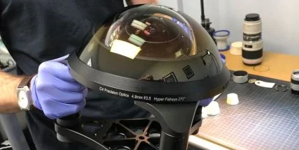 Процесс создания сверхширокоугольного объектива C-4 Precision Optics с фокусным расстоянием 4,9 мм, светосилой f/3.5 и углом обзора 270 градусов команда разработчиков опубликовала на своем YouTube-канале. Вес объектива с пятью линзами и байонетом Sony E составляет 12,97 килограмма, сообщает dpreview.