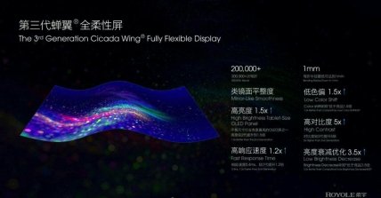 В основном, мероприятие посвятили обновлённой панели. Она имеет диагональ 7.3 дюйма с соотношением сторон 4:3. Экран сделан по технологии Cicada Wing 3-го поколения. Благодаря ей, панель получила уменьшенный радиус изгиба, а также улучшенную яркость и углы обзора. Производитель заявляет, что сам по себе дисплей можно складывать в разных местах (даже скручивать в трубочку) и он выдержит более 200 тысяч таких манипуляций.