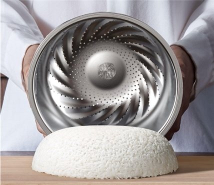 Основная чаша сделана из 5 слоёв высокоплотного чугуна и весит 2,6 кг. Кроме неё в комплект входит дополнительная чаша с 316 отверстиями, с помощью которой можно слить лишнюю воду из готовой крупы или приготовить еду на пару.